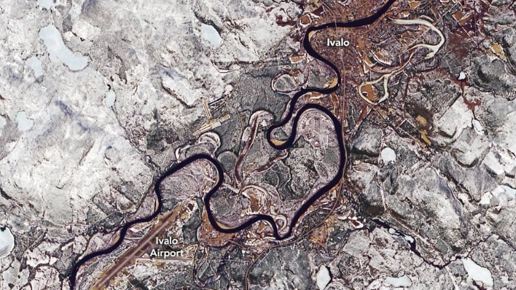 Nasa esittelee Ivalon alueelta otettua satelliittikuvaa, joka päätyi avaruusjärjestön päivän kuvaksi sunnuntaina 7.6.2020.