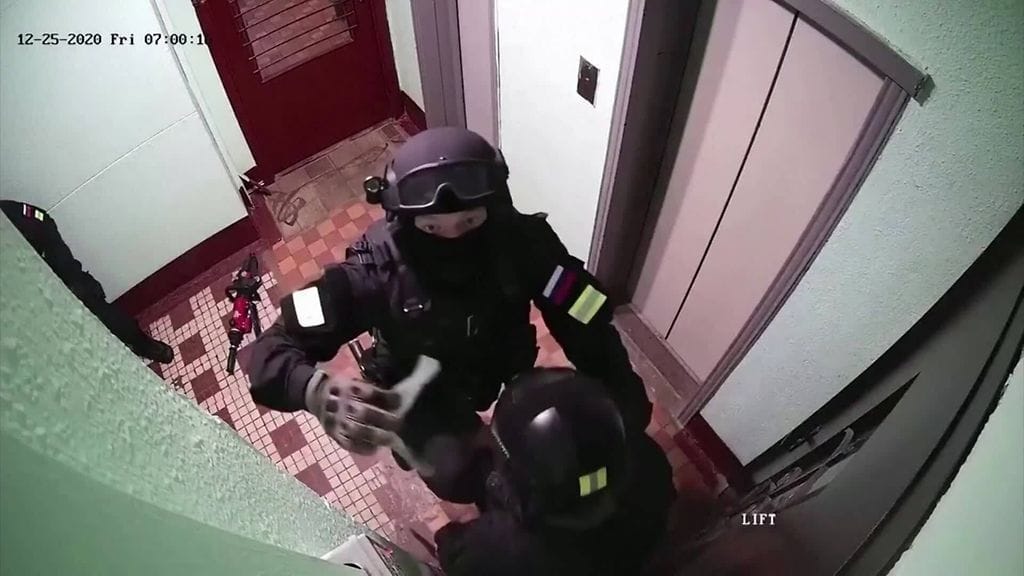 Videolla näkyy, kuinka Venäjän turvallisuuspalvelun FSB:n työntekijät ilmestyvät Sobolin asunnon ovelle ja alkavat koputtaa vaativasti. Sobolin rappukäytävään asentamasta valvontakameranauhoituksesta näkyy myös, kuinka miehet teippaavat kameran pimeäksi.