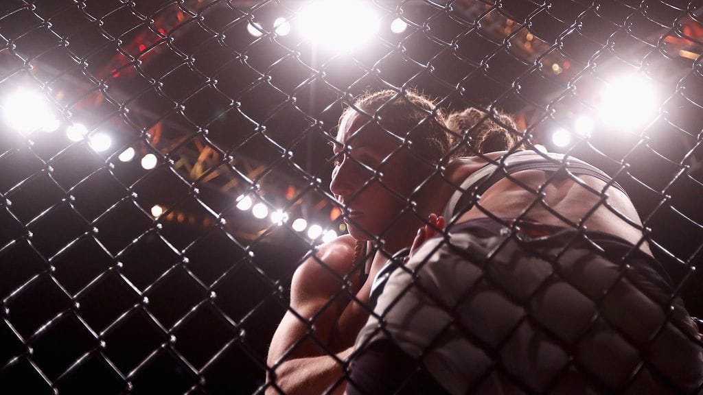 Espoossa ottelevat Izabela Badurek ja Roxane Teixeira. Katso yllä olevasta videosta lisää Niinimäen ja EuroFC-pomo Jarno Kukilan kommentteja naisten vapaaottelun tilasta.