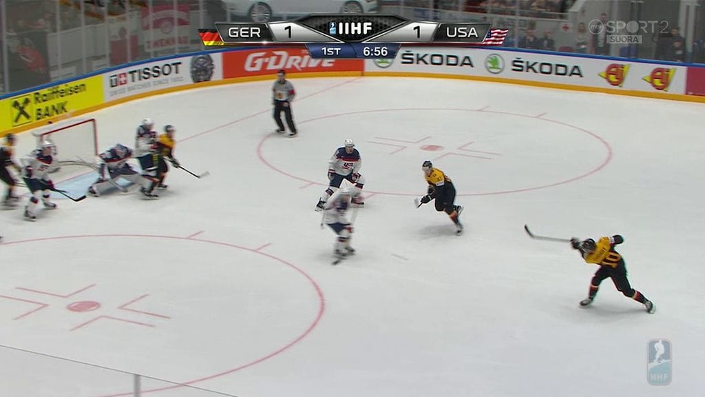 Saksa aloitti maalitehtailun kahden minuutin jälkeen Patrick Hagerin iskiessä ottelun avausmaalin. USA nousi peliin mukaan Jake McCaben maalilla.