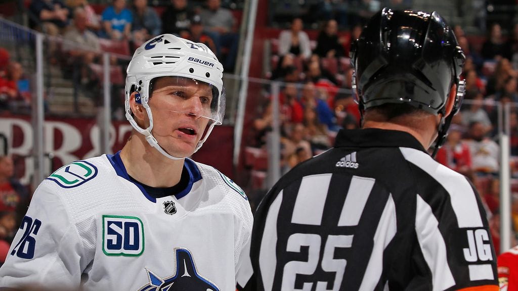 Vancouver Canucksin Antoine Roussel joutui kaivamaan kuvettaan, kun hän löi NHL-pelissä Edmonton Oilersin Jesse Puljujärveä.