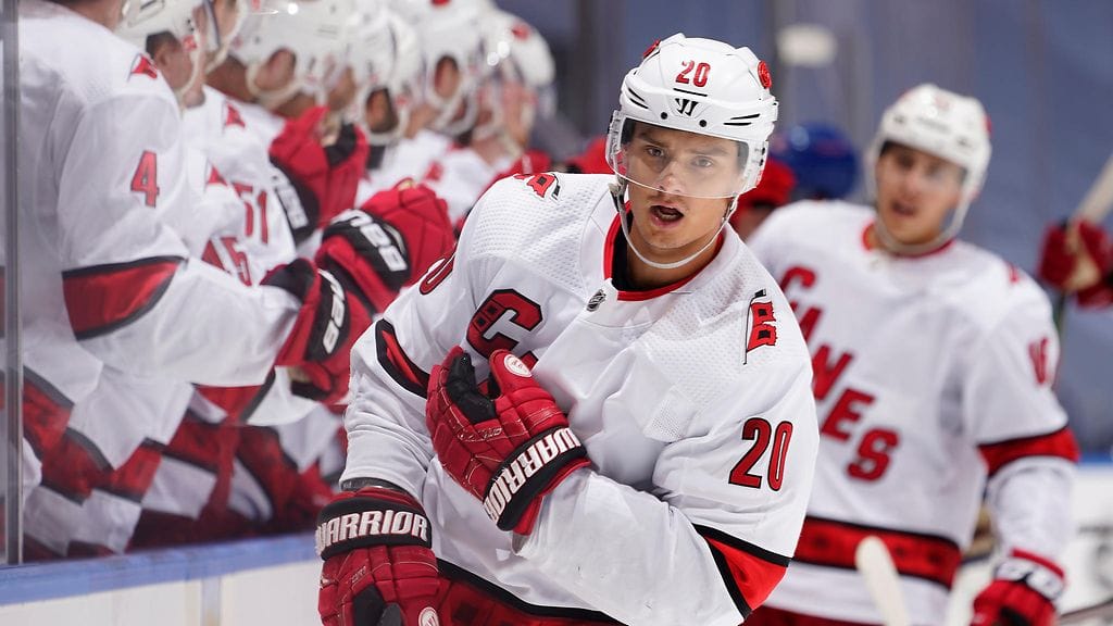 Hurricanesin suomalaistähti Sebastian Aho ja kumppanit olivat jo jäähallilla odottelemassa alkulämmittelyjen alkua.