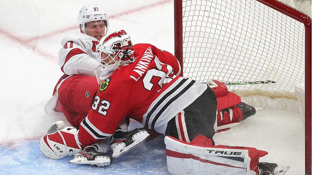 Mainiosti NHL-taipaleensa aloittanut Kevin Lankinen torjui kauden neljännen voittonsa, kun Chicago Blackhawks kaatoi Carolina Hurricanesin Suomen aikaa perjantaiaamuna maalein 6-4.