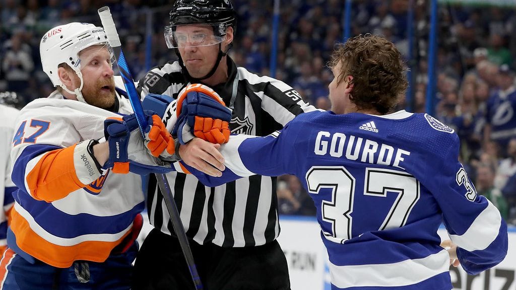 Komarov ja Gourde kävivät omaa miekkailua jo avauserässä. Tuolloin Islandersin suomalaishyökkääjälle Komaroville tuomittiin estämisjäähy.