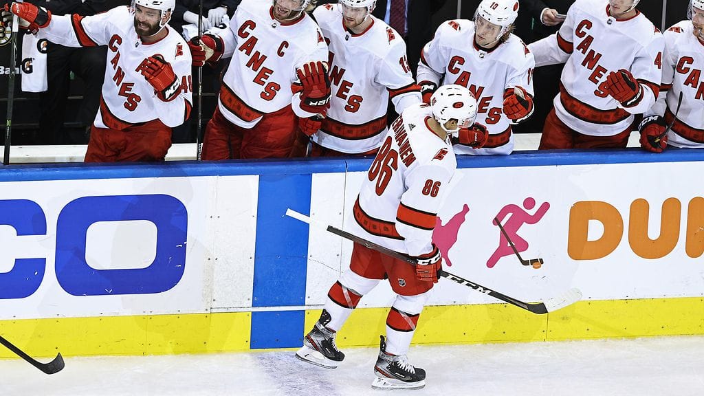 Teuvo Teräväinen avasi joukkueensa maalihanat, kun Carolina Hurricanes kaatoi Boston Bruinsin NHL:n pudotuspelien ensimmäisellä varsinaisella kierroksella. Carolina tasoitti samalla voitot 1-1:een.