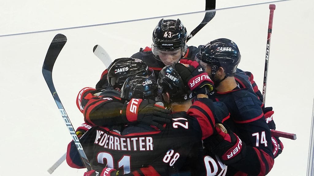 Kamppailun alkutahdit olivat suomalaisittain näyttävää katseltavaa, kun ensimmäistä otteluaan Hurricanesissa pelannut puolustaja Sami Vatanen löi kiekon syvään, Sebastian Aho jatkoi Teuvo Teräväiselle, joka löysi upealla syötöllä toiselta puolelta nousseen Jacob Slavinin. Tämä viimeisteli etuyläkulmaan Carolinan avausosuman.