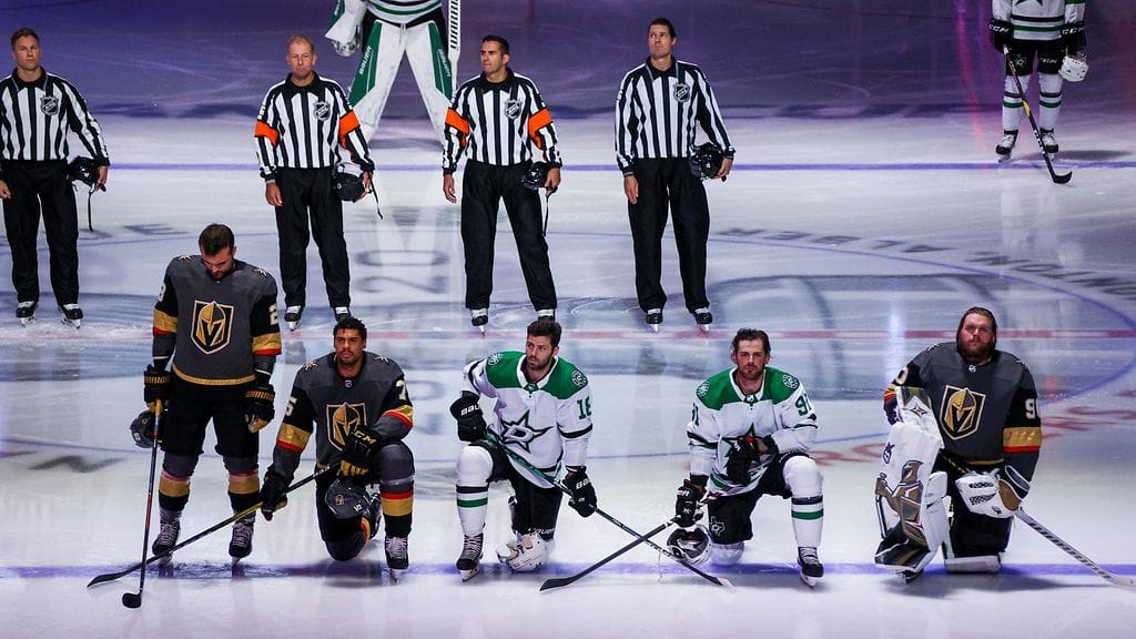 Lehnerin lisäksi ennen ottelua polvistuivat myös Golden Knightsin Ryan Reaves sekä Dallas Starsin Jason Dickinson ja Tyler Seguin.