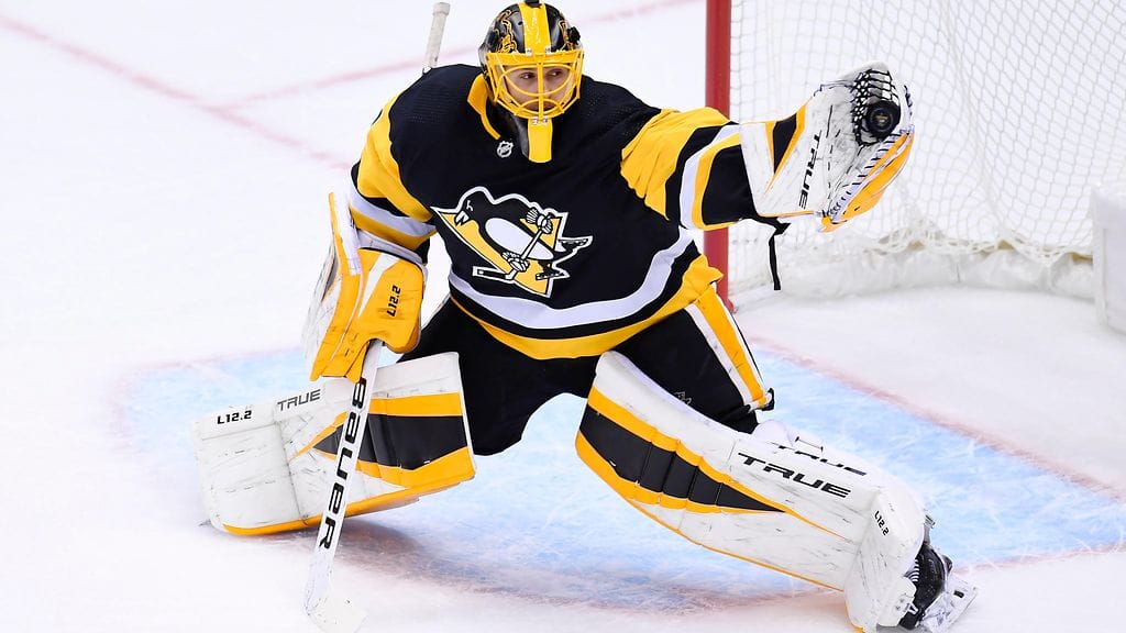 Pittsburgh Penguinsin maalivahti Casey DeSmith näytti mailapelitaitojaan Washington Capitalsia vastaan pelatussa ottelussa.