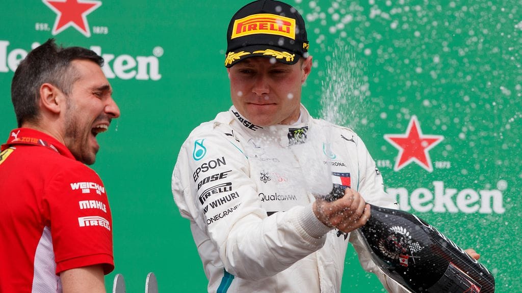 Bottas ajoi Ferrarin Sebastian Vettelin jälkeen toiseksi lauantain aika-ajossa, mutta joutui kovan haasteen eteen kisassa, kun Red Bullin Max Verstappen ponkaisi viereltä matkaan astetta pehmeämmillä renkailla. Bottas kuitenkin pusersi väkisin sisäpuolelle alun tiukassa mutkayhdistelmässä ja piti hollantilaisen takanaan.