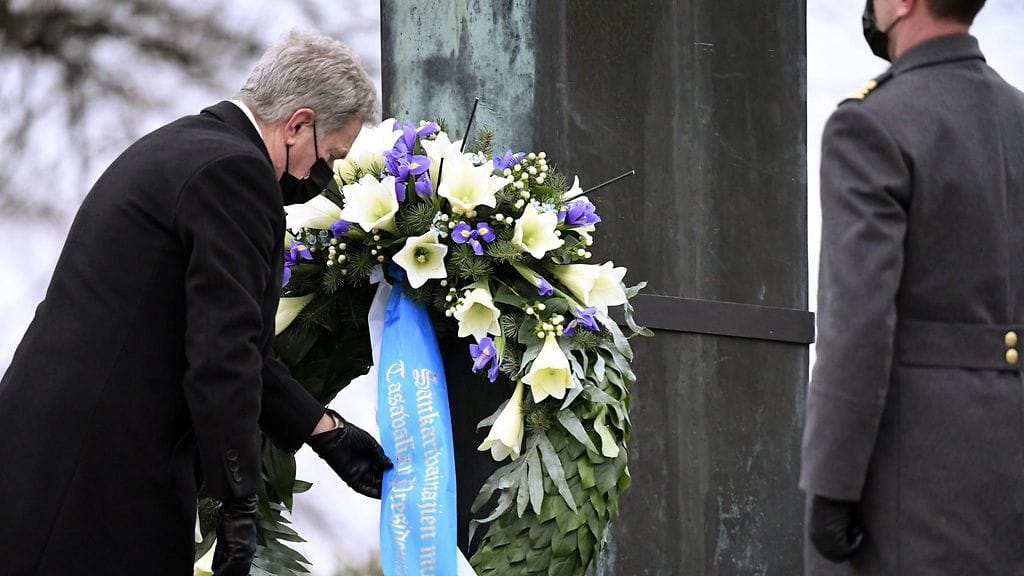 Puolustusvoimien ylipäällikkö, tasavallan presidentti Sauli Niinistö sekä puolustusvoimain komentaja, kenraali Timo Kivinen ovat laskeneet seppeleet Sankariristille Hietaniemen hautausmaalla.