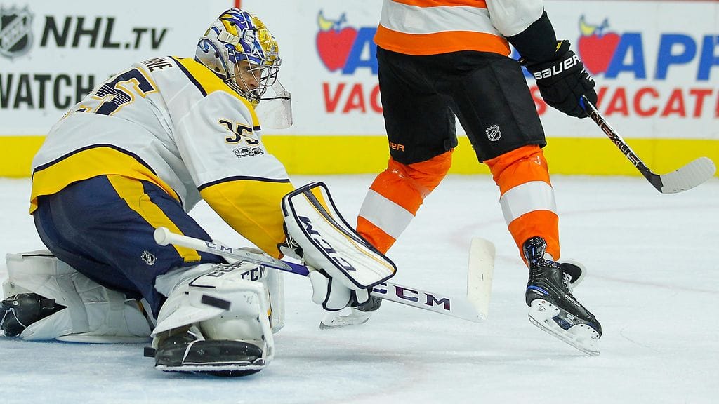 Nashville Predatorsin Pekka Rinne nousi Miikka Kiprusoffin rinnalle suomalaisten NHL-maalivahtien nollapelitilaston kärkinimeksi. Rinne torjui runkosarjassa NHL-uransa 44. nollapelin, kun hän pysäytti torstain 1–0-voitossa Philadelphia Flyersin kaikki 28 laukausta.