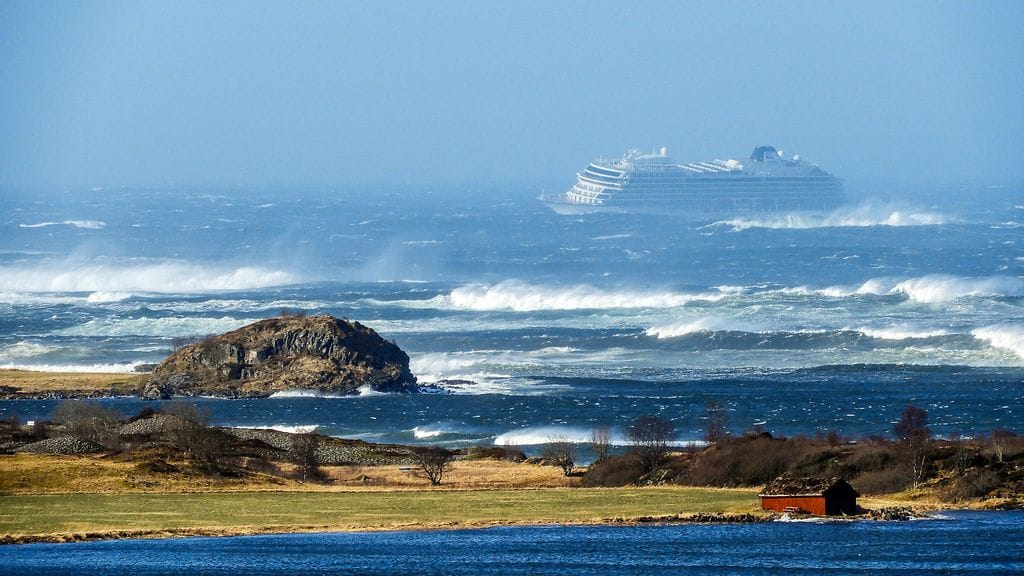 Norjan viranomaisten mukaan eilinen myrskysää ei ollut este risteilyalus Viking Skylle jatkaa matkaansa.