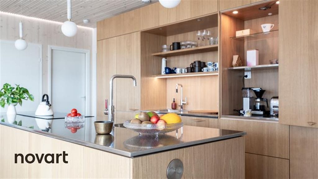 Näyttävää puupintaa, teräksiset tasot ja kaksi vesipistettä. Jyväskylän Grand Designs Suomi -kohteen Novart-keittiö on sekä kaunis että käytännöllinen.