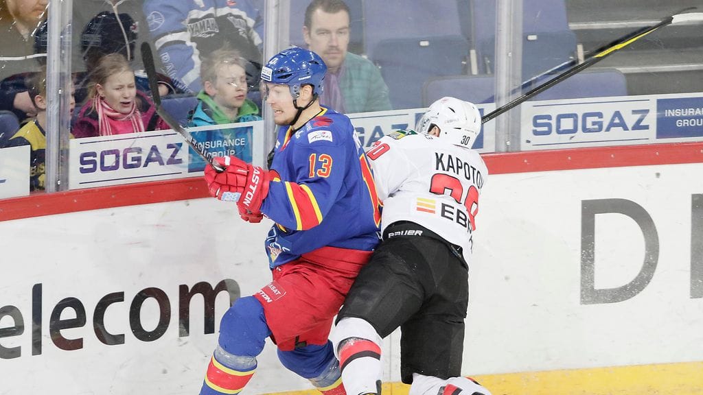 Helsingin Jokerit johtaa KHL:n jumbojoukkuetta Metallurg Novokuznetskia kahden erän jälkeen maalein 3-1.