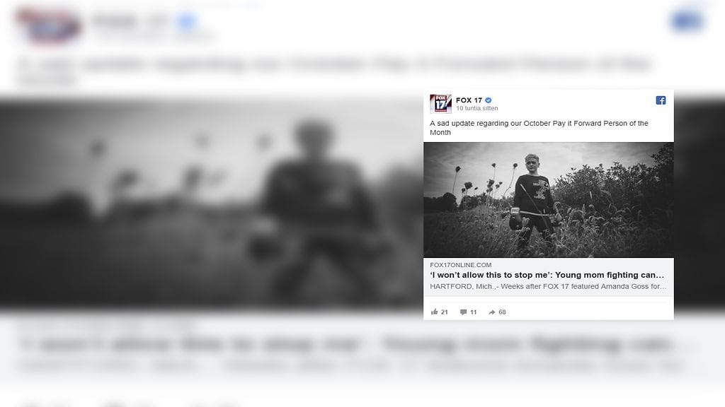 Facebook-kirjoituksessaan Yhdysvaltain Michiganissa asuva Amanda kertoo, että häntä oli huimannut ja hänen päätään särkenyt viime aikoina. Hän oli uskonut, että oireet johtuivat sivuontelotulehduksesta.