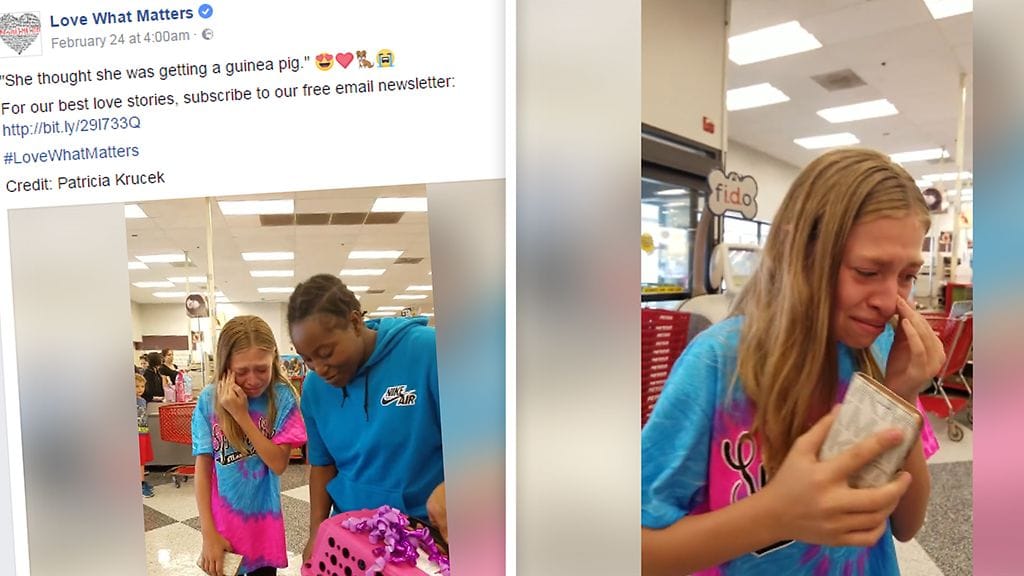 Tyttö ei saa sanottua sanaakaan, koska itkee. Videota on katsottu yli miljoona kertaa; kommentoijien mukaan tytön reaktio on ihastuttava.