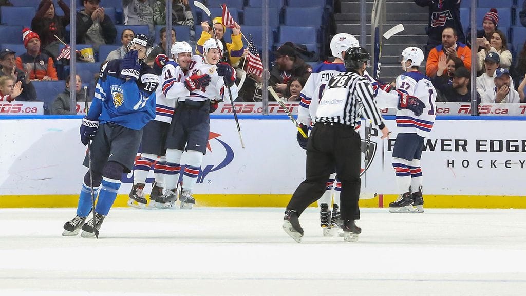Omissa kuitenkin soi erän viimeisellä minuutilla ja Suomi joutui lähtemään päätöserään kahden maalin tappiolla. Salamahetki toi Suomen tasoihin. Ensin onnistui Joona Koppanen ja minuuttia myöhemmin ykkösketjun toinen laituri Kristian Vesalainen. Jääkylmä suihku tuli puolitoista minuuttia ennen loppua. Puolustaja Adam Fox karkasi laidasta läpi ja ratkaisi ottelun.