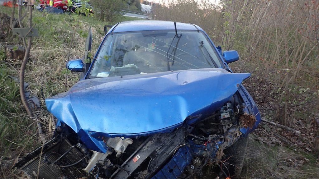 Auto oli suistunut oikealle puolelle tietä ja pyörinyt useita kertoja ympäri.
