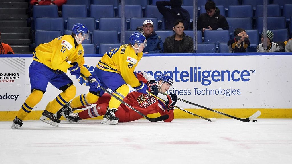 Nuorten MM-kisoissa Buffalossa nähtiin rumaa käytöstä torstaina ennen Ruotsin ja Tshekin välisen ottelun alkua.