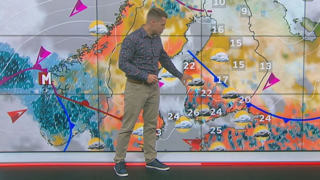 – Sitä ennen lämpötila ehtii kohota helteille etelässä ja lännessä. Lounais-Suomi on varmaan se lämpimin kolkka.