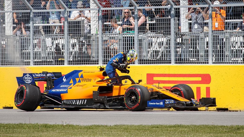 McLarenin Lando Norrisin kilpailu Kanadan GP:ssä päättyi jo varhaisessa vaiheessa, kun hänen autonsa hyytyi Montrealin iltapäivässä.