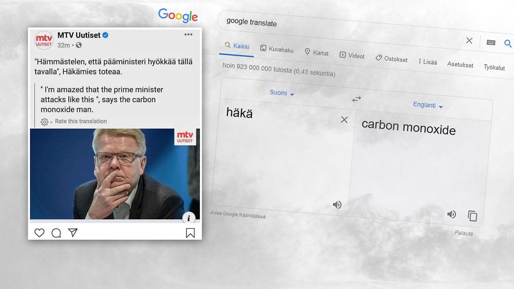 Käännöshauskuutus oli lähtöisin MTV Uutisten jutusta, jossa EK:n toimitusjohtaja Jyri Häkämies kritisoi pääministeri Sanna Marinin UPM:n paperitehtaan sulkemista koskevia puheita.