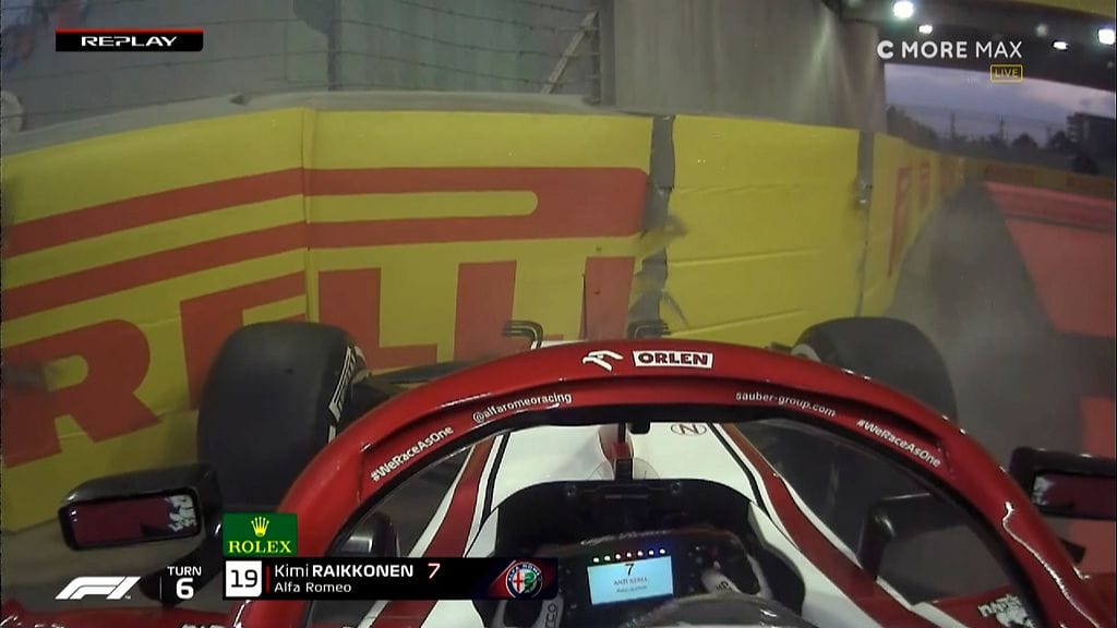 Lopulta Räikkönen menetti auton hallinnan kokonaan. Videolta näkyy, miten surkeissa merkeissä ikoninen ura päättyi.
