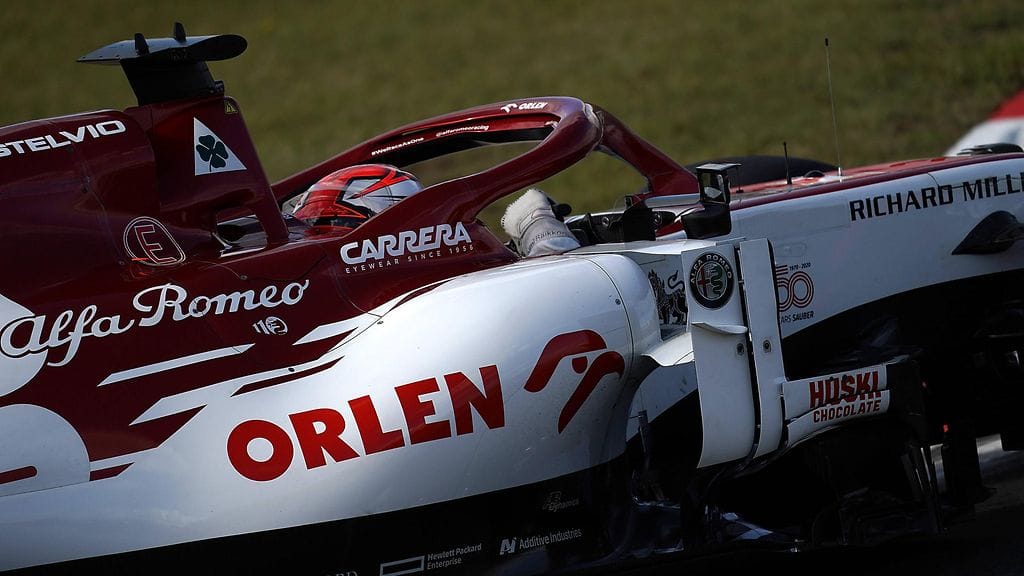 Alfa Romeon suomalaiskuski taisteli Williamsia edustavan Russellin kanssa 19. sijasta kisan 14. kierroksella. Avausmutkassa Räikkönen ajautui ohitustilanteessa liian leveäksi ja kilkkasi samalla Russellin ulos radalta.