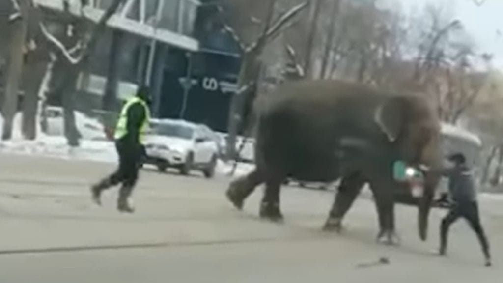 Uutistoimisto Interfaxin mukaan toinen norsu ylitti autotien ja toinen meni kierimään lumikasaan. Videolla näkyy, kuinka sirkuksen työntekijä yrittää pysäyttää autotietä ylittävää norsua, mutta epäonnistuu. Norsu kävelee määrätietoisesti tien toiseen päähän.
