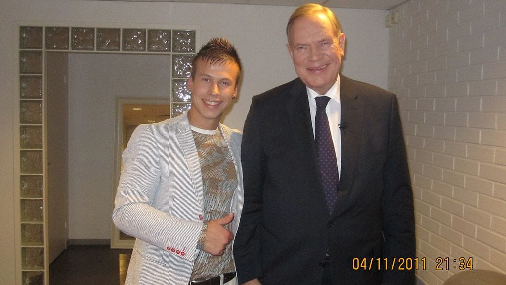 Antti Kurhinen pääsi yhteiskuvaan Paavo Lipposen kanssa.
