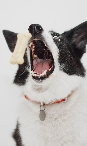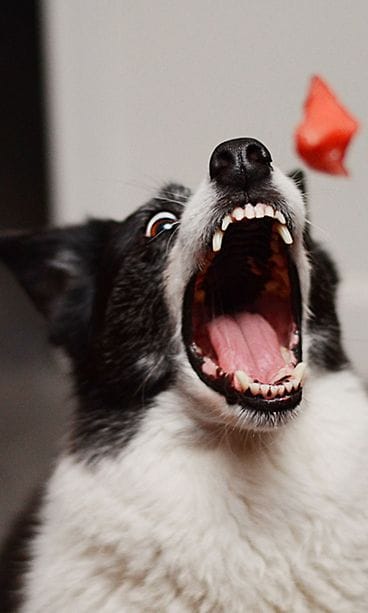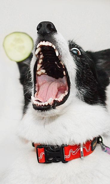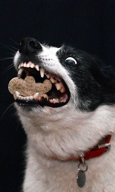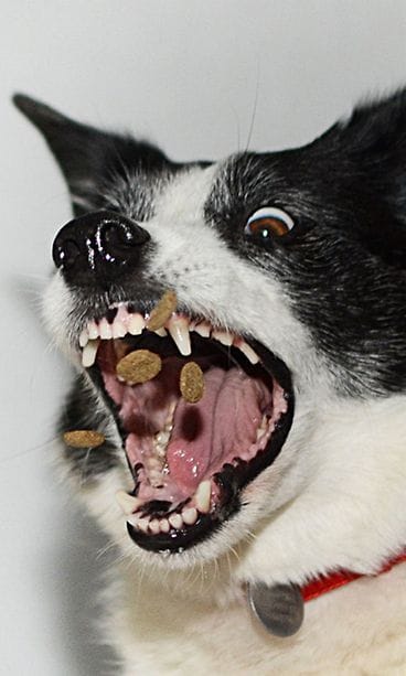 "Catch"-valokuvasarjassa esittelee, miltä koirien ilmeet näyttävät, kun ne nappaavat ilmasta koirankeksin tai vaikkapa kurkunpalan!