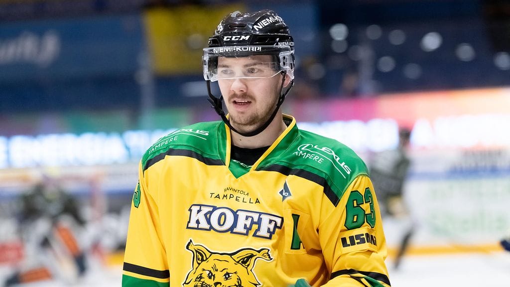 Mieho nappasi kiekon lopulta lapaansa ja iski pelivälineen varmasti ohi Sport-vahti Niko Hovisen.
