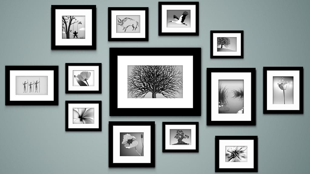 Jos sommitteleminen seinälle tuottaa vaikeuksia, tee tauluista paperiset mallit ja teippaa niitä seinään, kunnes sommitelma on valmis. Hyvin suunniteltu sommitelma on helppo toteuttaa.