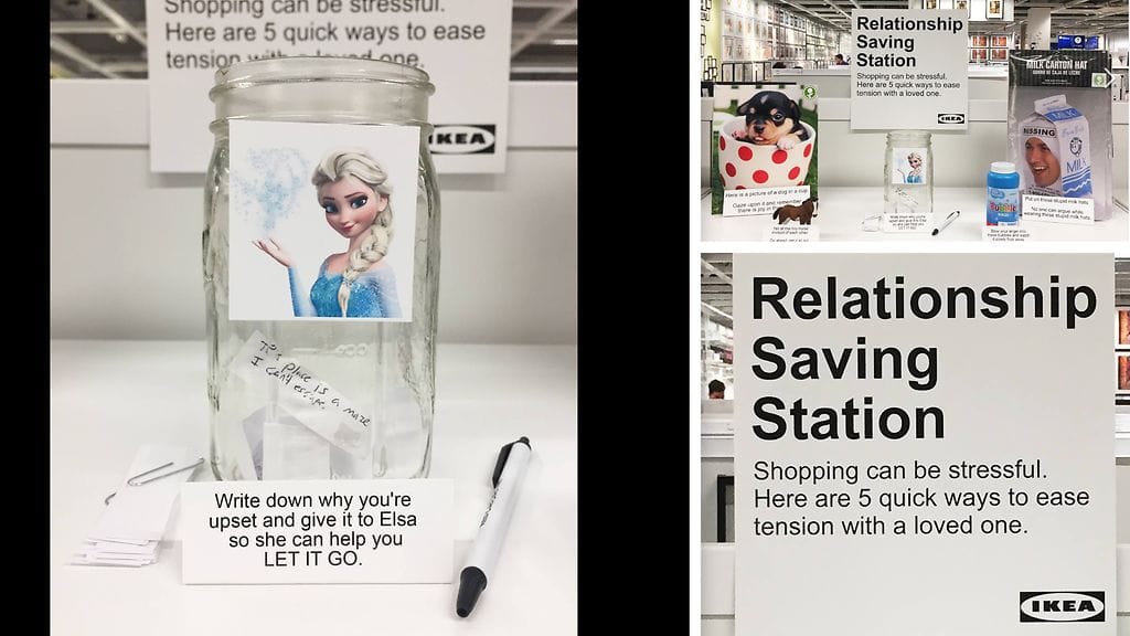 Wysaski rakensi kalifornialaiseen Ikeaan "parisuhteen pelastusaseman", joka pelastaa parit eroon johtavilta riidoilta shoppailureissun aikana.
