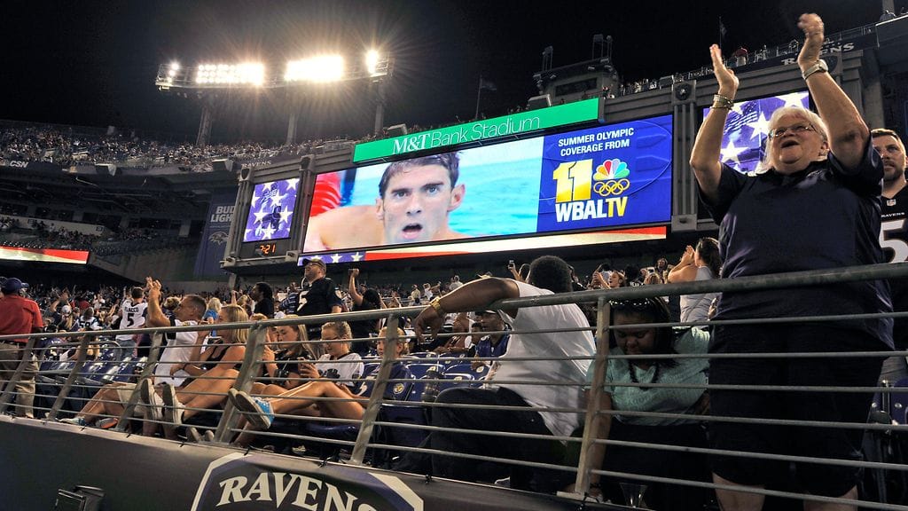 Jopa paikallisen NFL-seura Baltimore Ravensin harjoitusottelu Carolina Panthersia vastaan keskeytyi finaaliuinnin kunniaksi.
