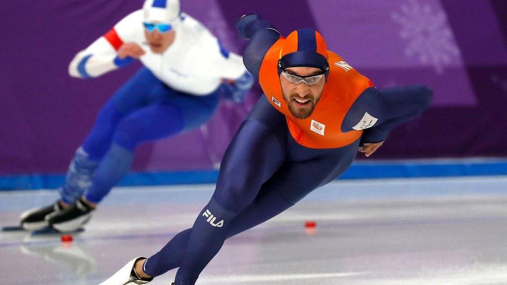 Hollantilaiskultamitalisti Kjeld Nuis kiitteli Mika Poutalaa vuolaasti pikaluistelun 1 000 metrin olympiafinaalin jälkeen.