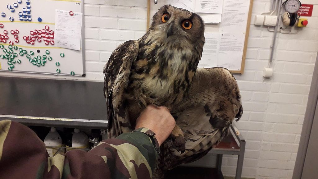 Porissa pelastuslaitos hälytettiin tiistaina paikalle maaliverkkoon sotkeutuneen huuhkajan takia.