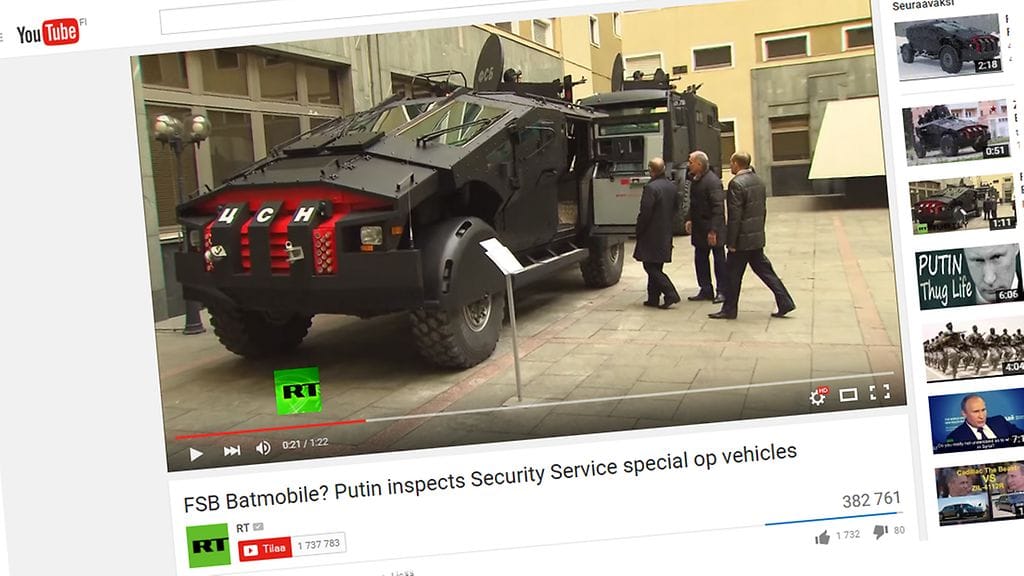 Venäjän valtiollisen median videolla presidentti Vladimir Putin nähdään tutustumassa Batmanin työsuhdeautoa muistuttavaan hirviömäiseen kulkupeliin.