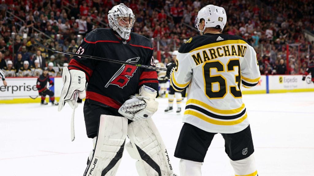 Boston Bruins ei päästä Carolina Hurricanesin maalivahteja helpolla NHL:n pudotuspeleissä.