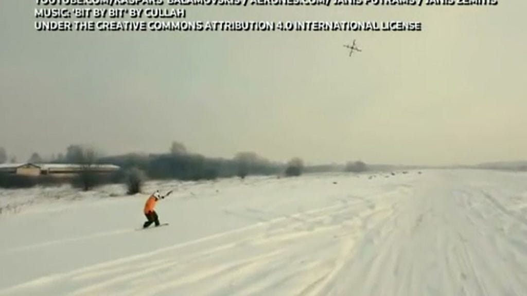 Videolla nähdään millaista on, kun lennokkikopteri vetää perässään lumilautailijaa. Onko tässä seuraava urheilulajihitti?