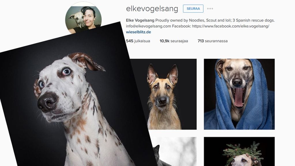 Saksalainen valokuvaaja Elke Vogelsang tunnustautuu erityisen koirarakkaaksi ihmiseksi: hän onkin yhdistänyt nämä kaksi intohimoaan kuvaamalla huikeita potrettikuvia koirista. Kuvissaan hän pyrkii ikuistamaan koirien ilmeikkyyttä, niiden ominaisia piirteitä, tunteita ja persoonaa. Hänen mukaansa koirat voivat näyttää nauravan, olevan surullisia, hämmentyneitä ja jopa höpsöjä.