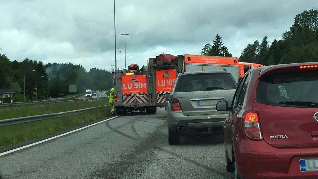 – Kaksi samaan suuntaan kulkenutta henkilöautoa kolaroi. Toinen autoista ajautui keskikaidetta päin, palomestari Tommi Varjonen Länsi-Uudenmaan pelastuslaitokselta kertoo syyksi liikenteen tukkeutumiselle molemmilta kaistoilta.