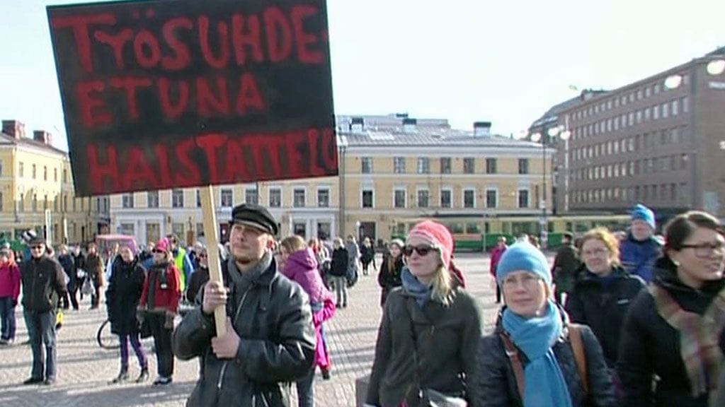 Sadat ihmiset vaativat iltapäivällä Helsingissä työrauhaa kouluihin. Paikalla oli paljon opettajia, jotka puolustivat Alppilan yläkoulusta erotettua opettajaa.