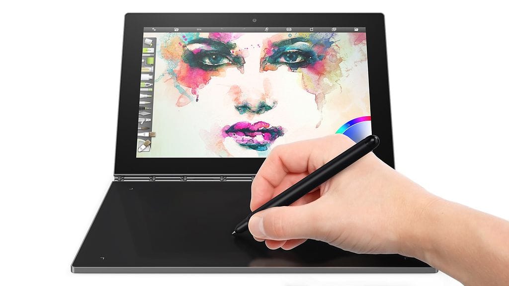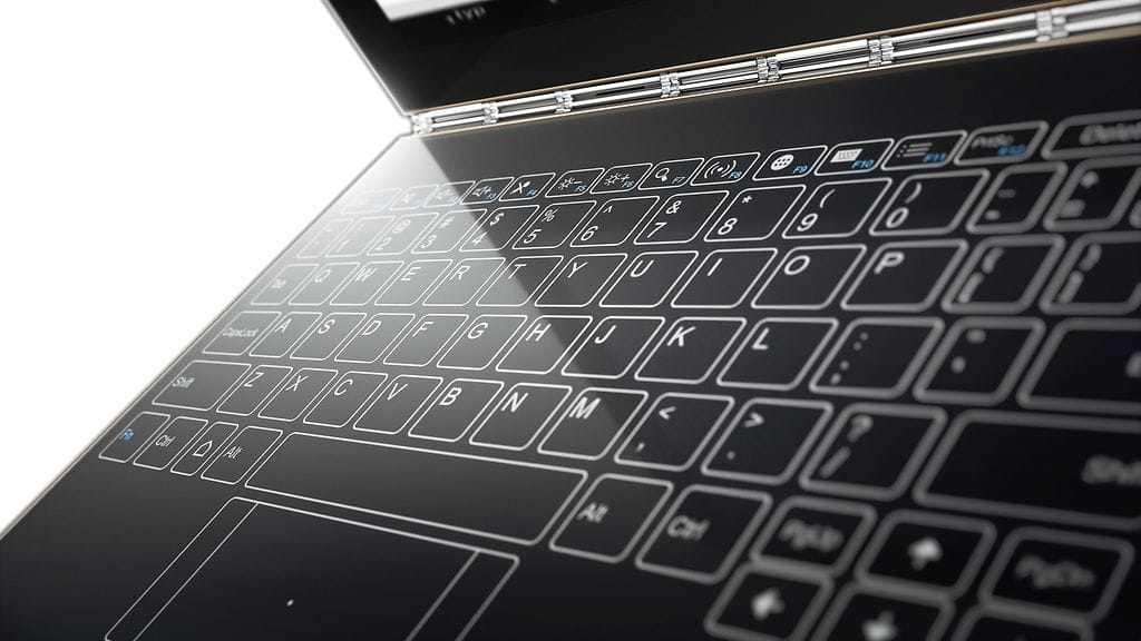 Yoga-mallisto tunnetaan hybridilaitteista, joita voi käyttää sekä kannettavana tietokoneena että tablettina. Yoga Bookin erikoisuus ei kuitenkaan ole näytössä vaan näppäimistössä. Laitteessa ei nimittäin ole lainkaan perinteisiä näppäimiä vaan kirjoittaminen hoidetaan kosketusalustalta.