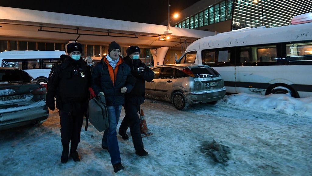 Venäläisen oppositiojohtaja Aleksei Navalnyin liittolaisia on otettu kiinni moskovalaislentokentällä Navalnyin kotiinpaluun alla.