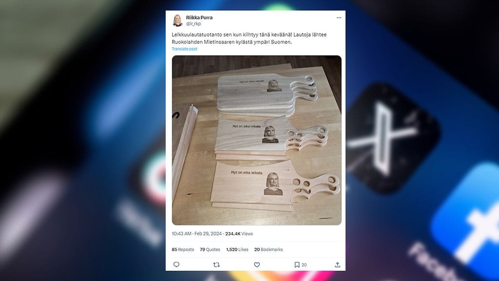 Valtiovarainministeri Riikka Purra (ps.) julkaisi torstaina viestipalvelu X:ssä jälleen tviitin kuvallaan varustetuista leikkuulaudoista. Julkaisu on herättänyt monessa vastareaktion.