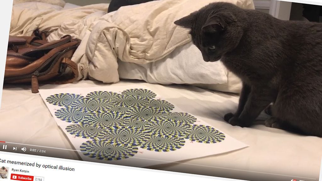 YouTube-käyttäjä Ryan Kotzinin kissavideo on hilpeää katsottavaa. Videolla lemmikkikatti tuijottaa hämmentyneenä paperia, jossa on pään sekaisin saava kuvio. Optinen illuusio hämmentää kissaa niin, että se raapii ja puree paperia selvästi ihmetellen silmissä viliseviä ympyröitä.