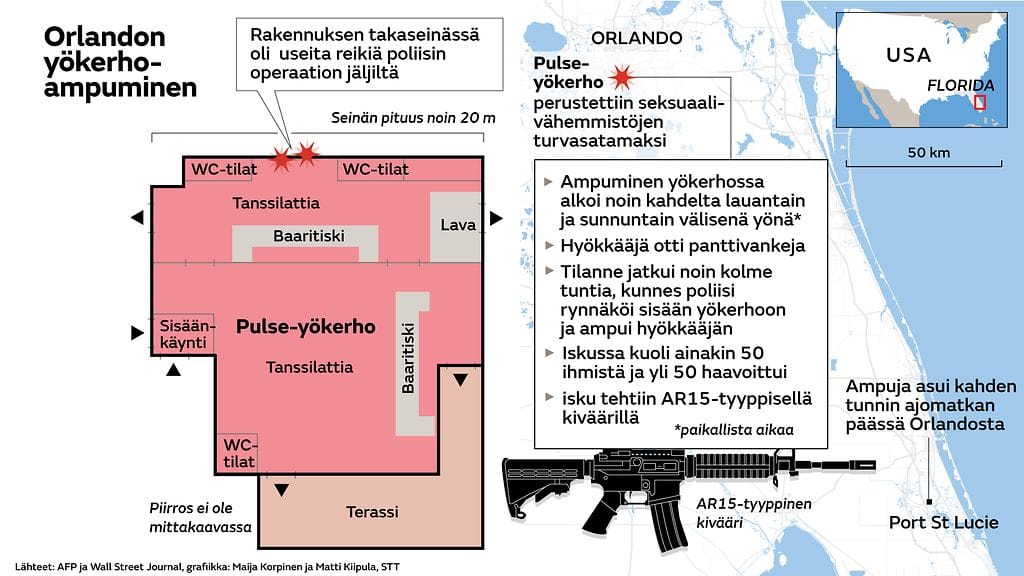Floridan Orlandossa 50 ihmistä sai lauantain ja sunnuntain välisenä yönä surmansa, kun aseistettu mies hyökkäsi homojen suosimaan yökerhoon. Tilanne päättyi, kun poliisi ampui hyökkääjän.