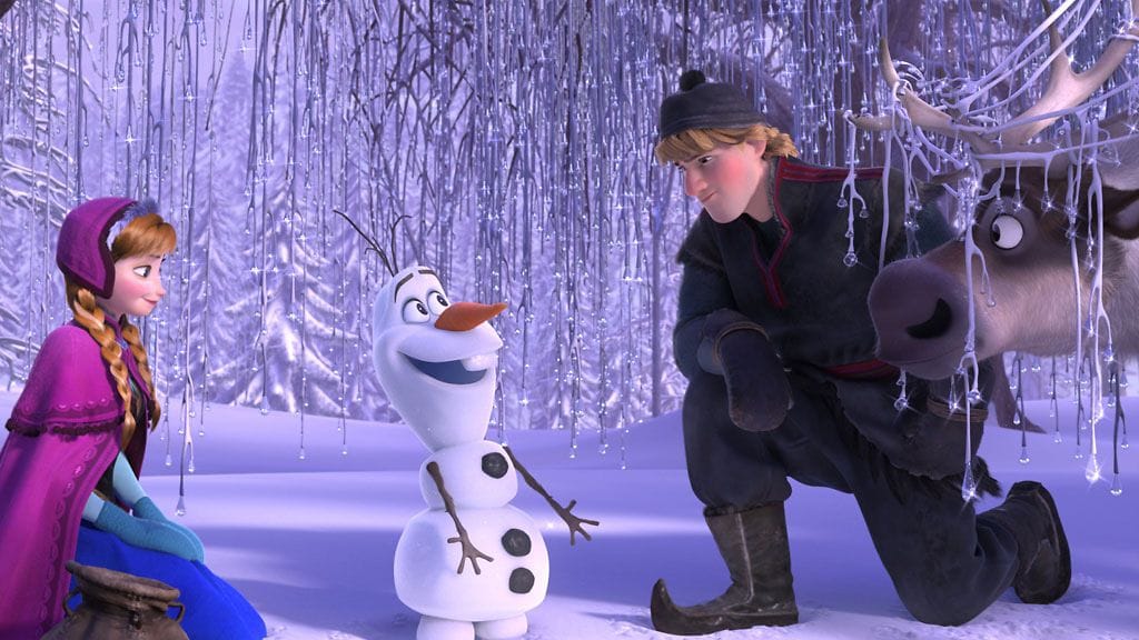 Matkalla Anna ja Kristoff kohtaavat vuoriston vaaroja, ankaria olosuhteita, vuorenpeikkoja ja hulvattoman hauskan lumiukon nimeltä Olaf (Tero Koponen) heidän yrittäessään yhdessä pelastaa valtakunnan.