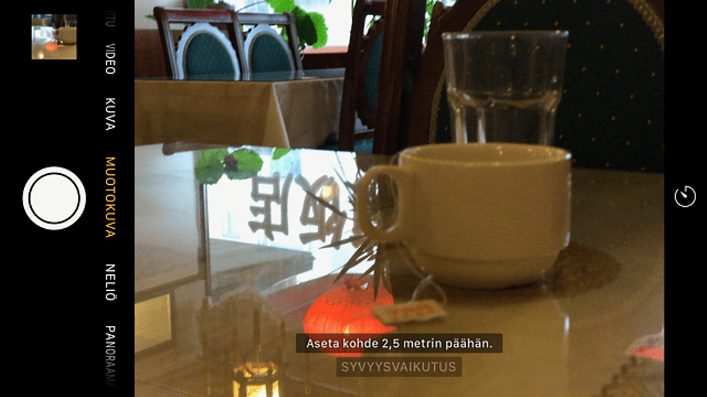 Muotokuva-kuvaustilassa kuvaan lisätään niin sanottu bokeh-efekti eli syvyysterävyys, jolloin etualalla oleva kohde pysyy terävänä ja taka-alalla olevat asiat näkyvät epätarkkoina. Kyseinen efekti on tuttu järjestelmäkameroista. Sellainen löytyy myös Huawein P9- ja Honor 8 -malleista, niin ikään ohjelmallisesti toteutettuna. IPhone 7 Plus luo syvyysterävyysvaikutelman käyttämällä kaksikertaista teleobjektiivilinssiä ja määrittelee, minkä verran kuvassa olevia kohteita sumennetaan. Huawein eduksi on sanottava, että P9 tarjoaa selvästi enemmän mahdollisuuksia bokeh-efektin käyttöön, sillä käyttäjä voi määritellä miten paljon taustaa sumennetaan.